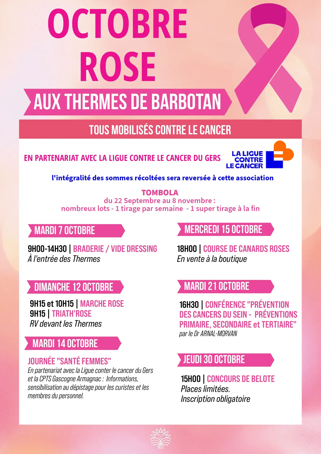 Contactez Animations Octobre Rose aux Thermes de Barbotan