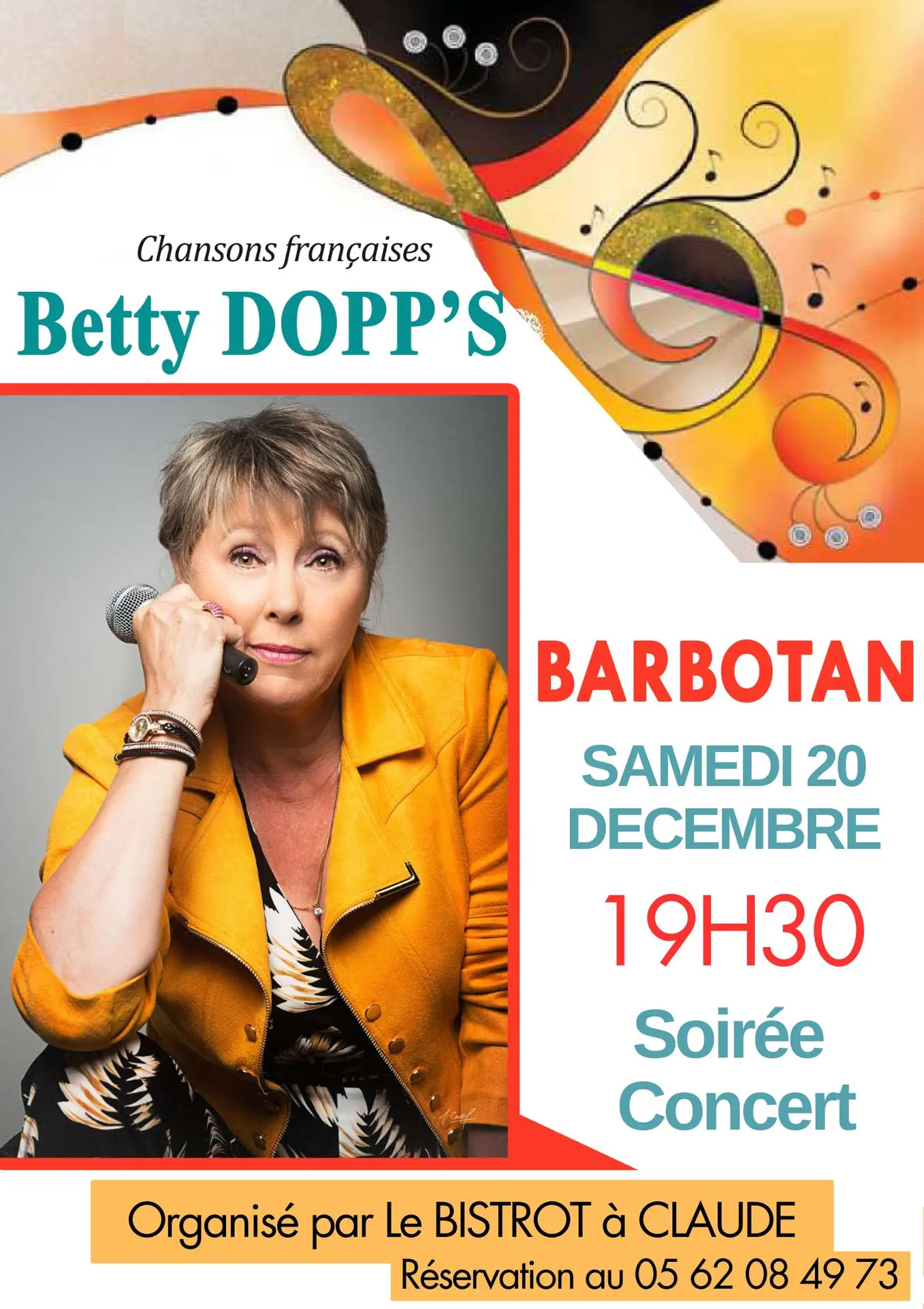 Samedi 20 décembre 2025, dès 19h30, repas-concert au Bistrot à Claude à Barbotan-les-Thermes avec Betty Dopp's !