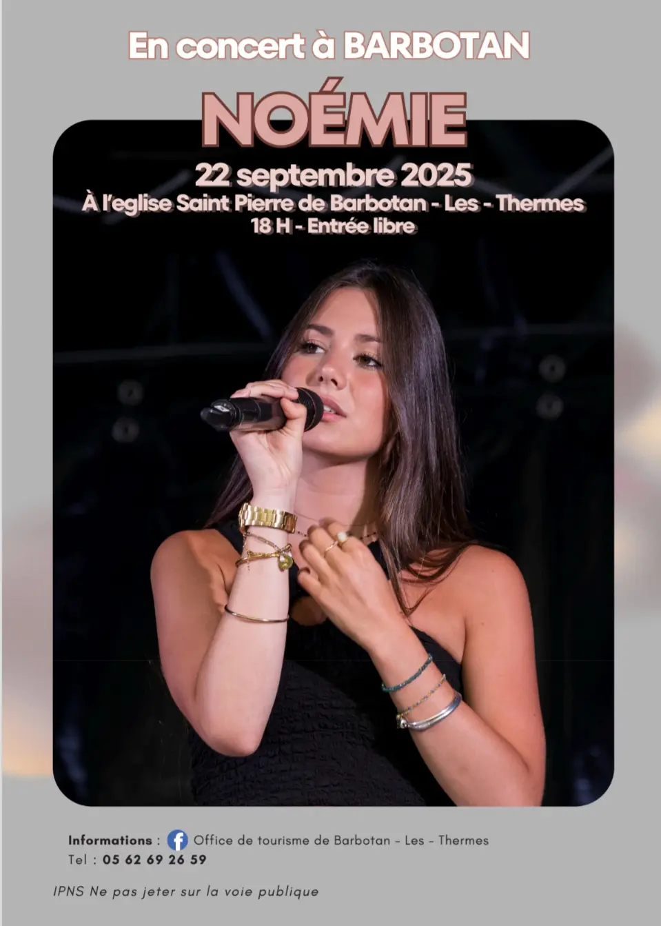 Lundi 22 septembre, retrouvez le dernier concert de Noémie à l'église Saint Pierre de Barbotan-les-Thermes !