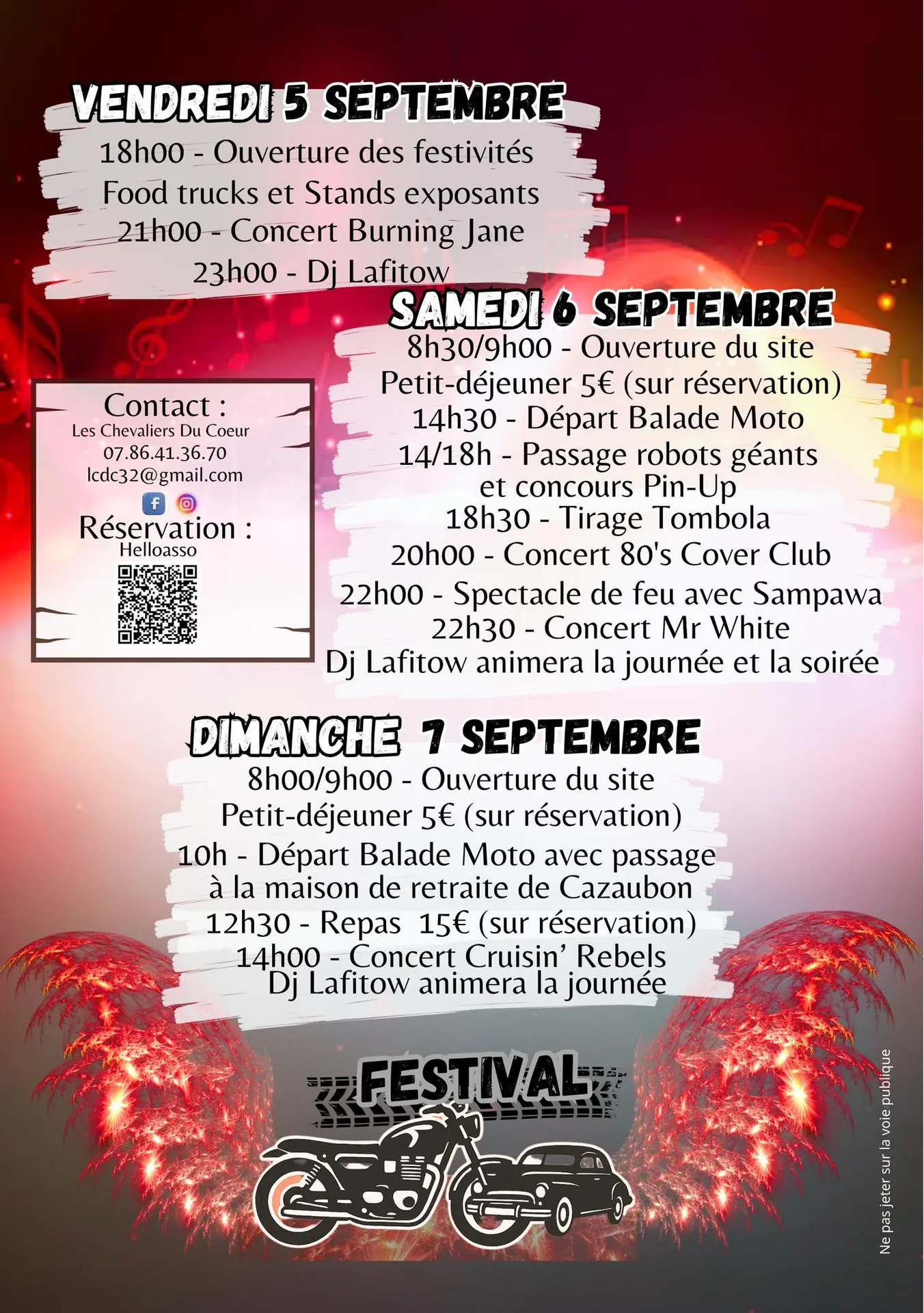 Festival caritatif Autos/Motos par les Chevaliers du Cœur au stade municipal de Cazaubon, du 5 au 7 septembre 2025 !