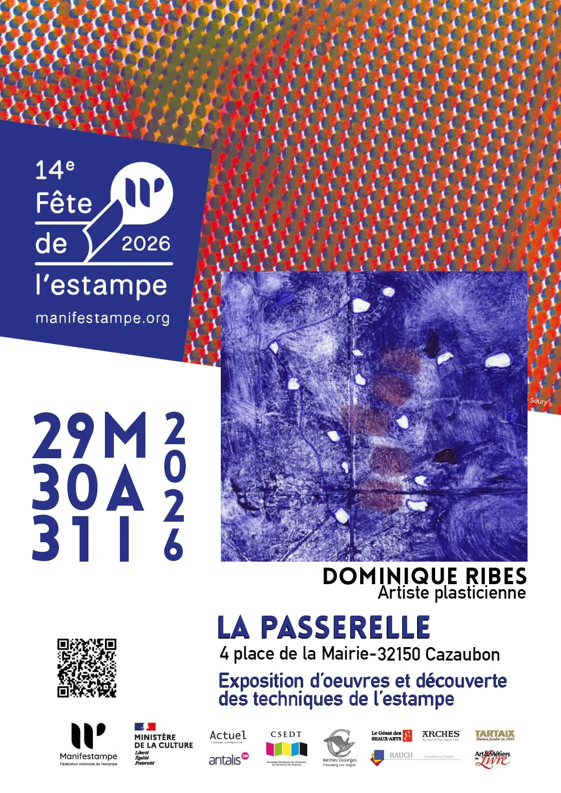 Du 29 au 31 mai 2026, 14è Fête de l'Estampe "Manifestampe" proposée par l'artiste plasticienne Dominique RIBES à Cazaubon.