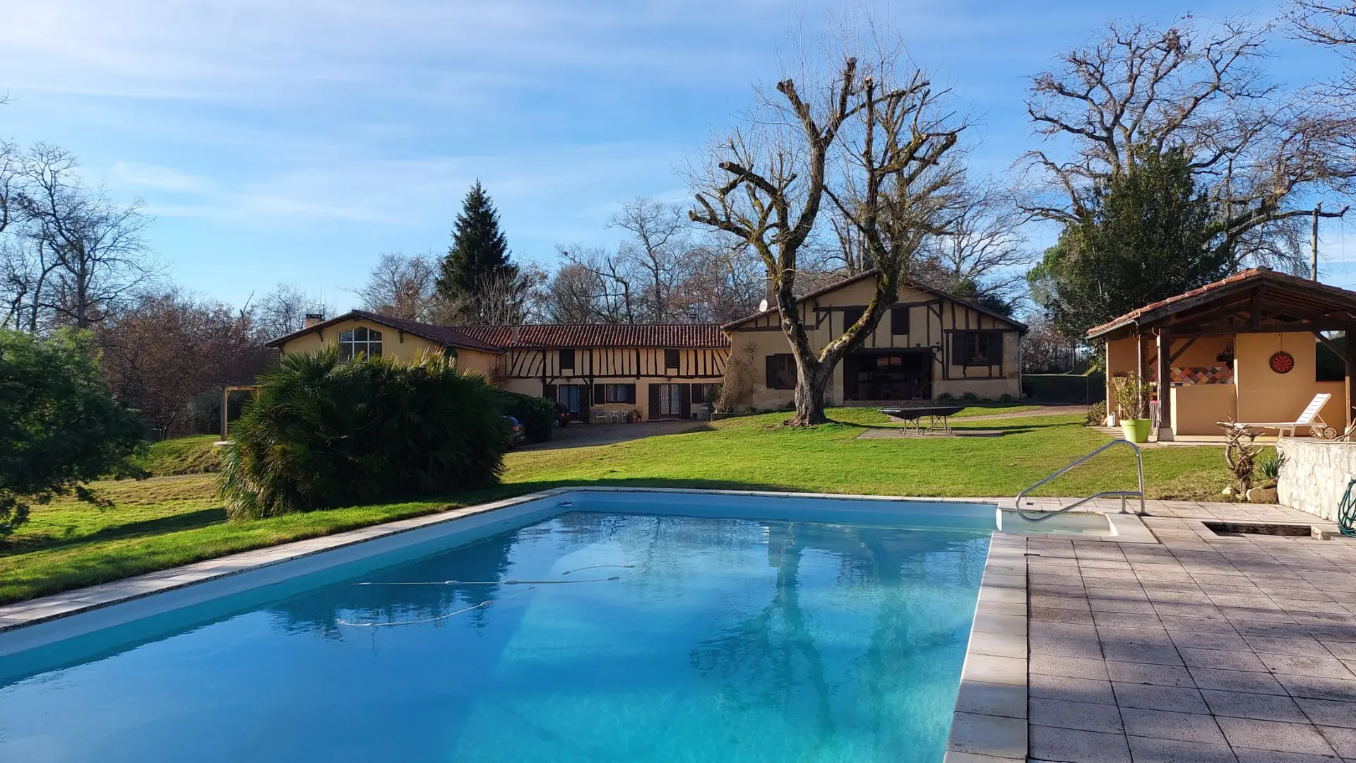 Logement situé dans un corps de ferme totalement rénové dans la compagne du Bas-Armagnac avec grande piscine.