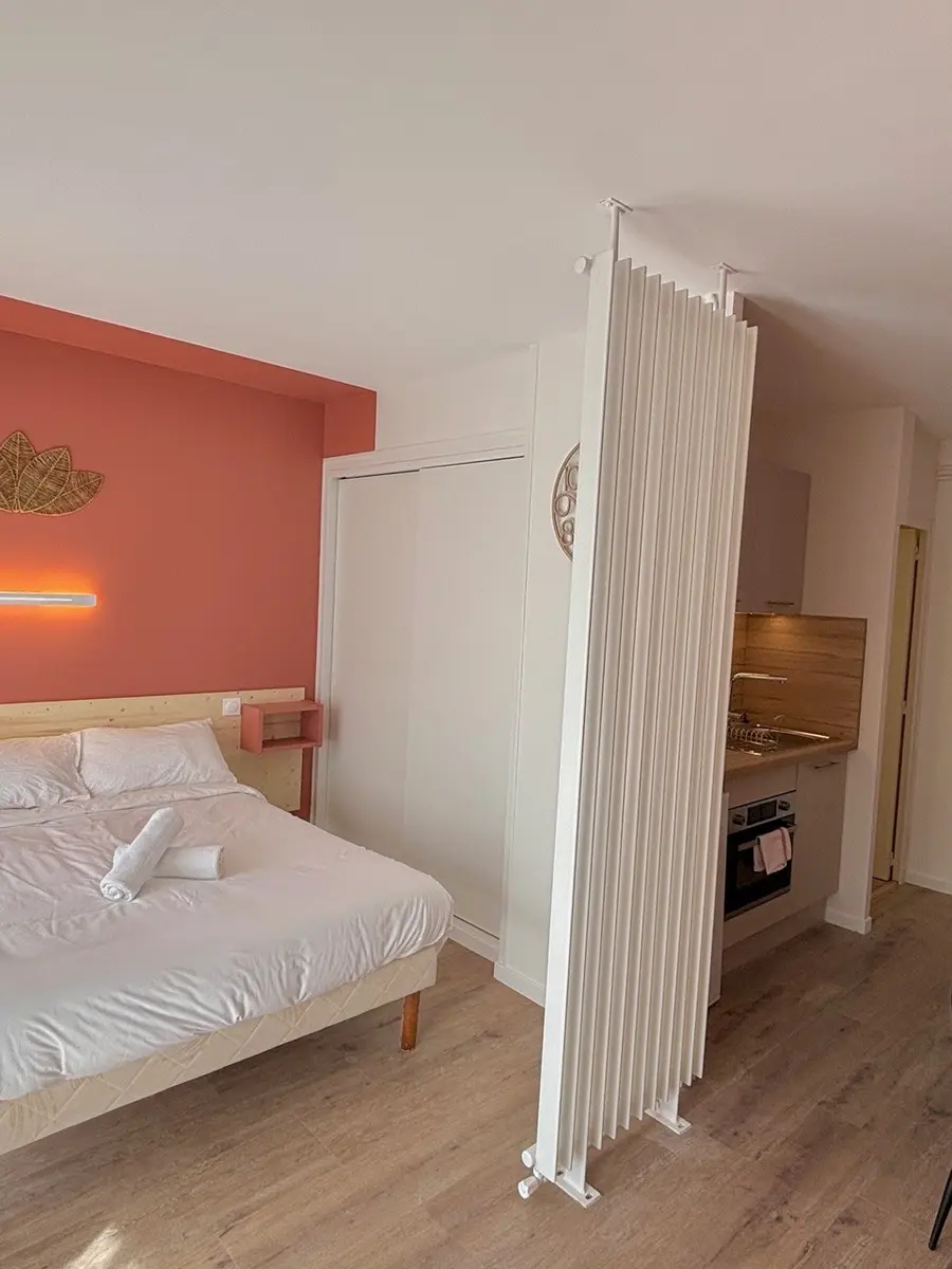 Chaque logement dispose d'une terrasse ou d'un balcon, d'une literie de qualité, d'une décoration soignée et d'un équipement complet (cuisine aménagée, tv connectée, wifi haut débit...)