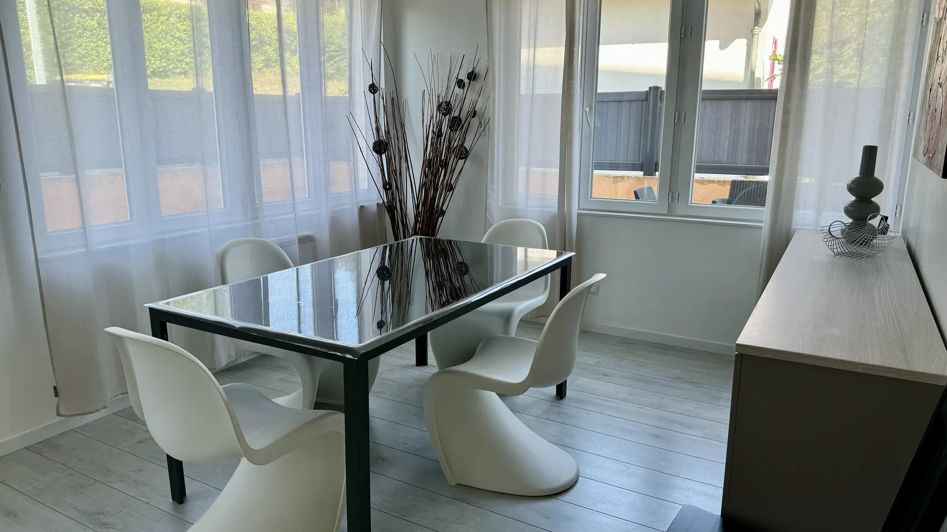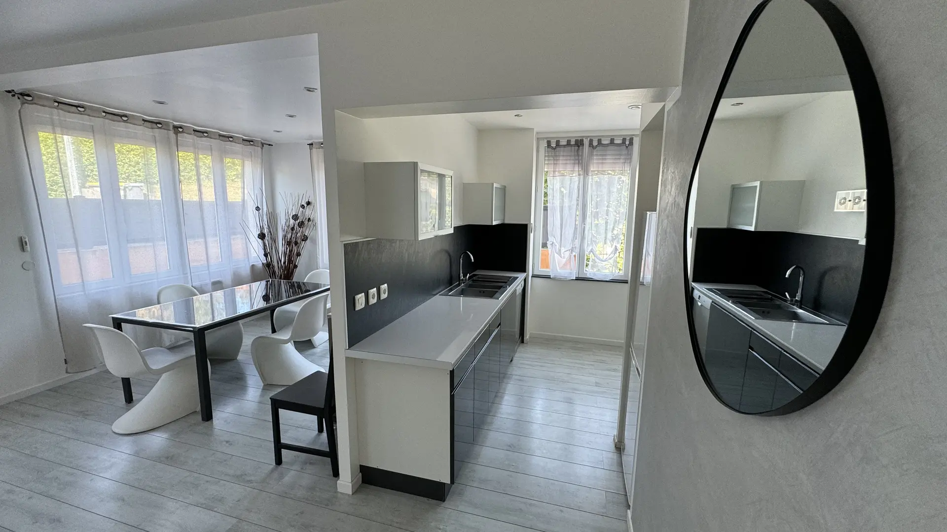 - Cuisine avec table pour les repas.