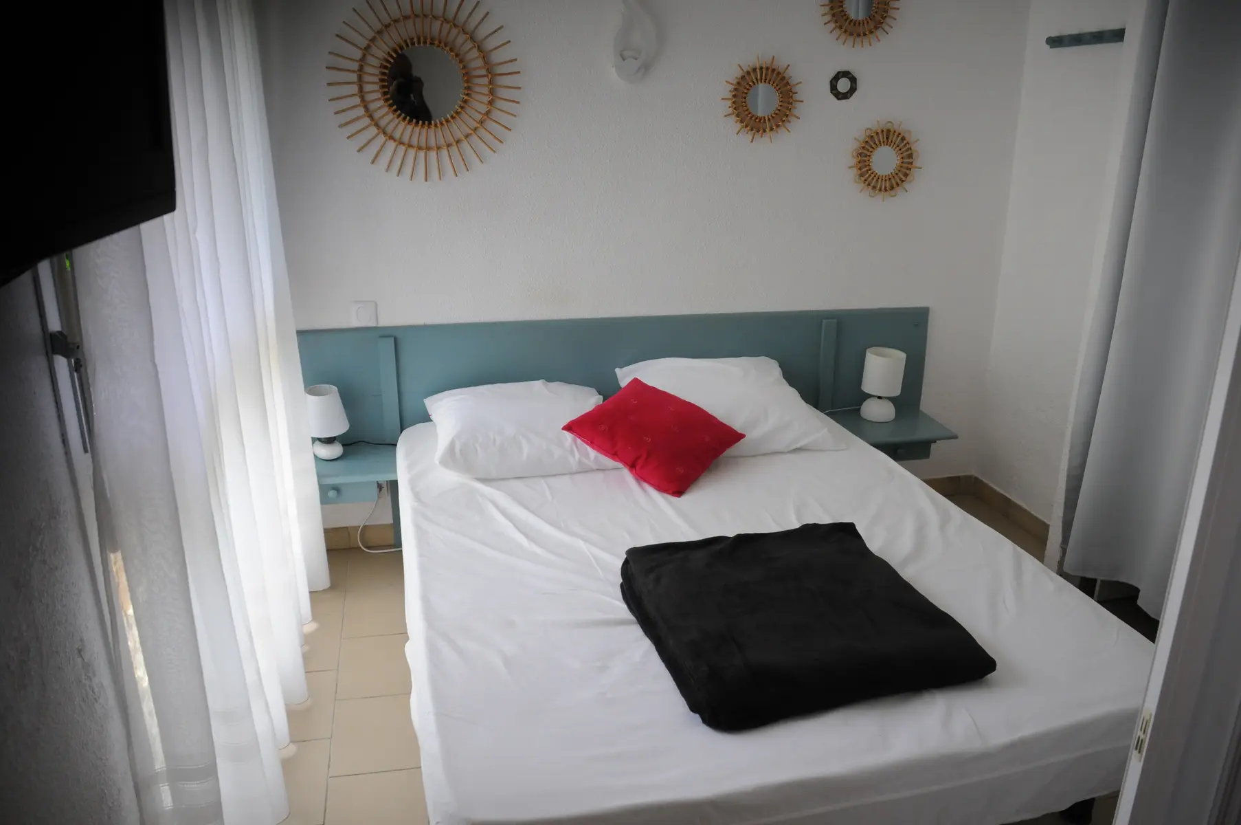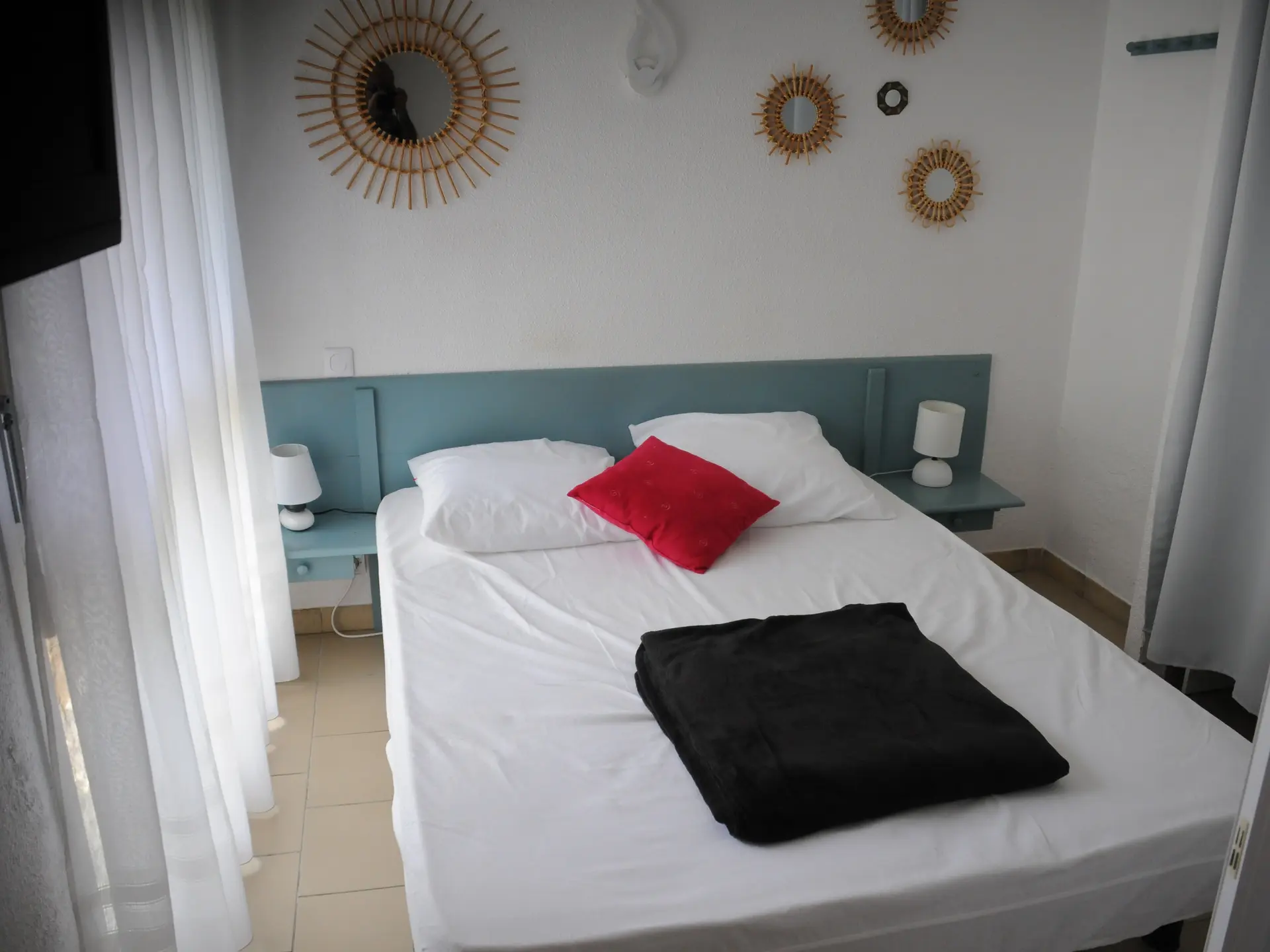 Situé à Barbotan-les-Thermes (Gers) belle station thermale. Dans un cadre de verdure et de calme, nous vous proposons un appartement de type T1Bis de 23m2 classé 2** avec balcon aménagé, au premier étage sans ascenseur. Il est composé d’une entrée, d’un séjour avec coin cuisine meublée et équipée (plaque de cuisson vitro céramique, four, micro-ondes, cafetière, bouilloire, grille-pain etc), télévision et wifi, une chambre avec placard de rangement et couettes et/ou couverture, oreillers, traversin, une salle d’eau avec douche, lavabo, lave-linge, Toilettes séparés, une terrasse couverte exposée Sud-ouest avec table et fauteuils relax, parking privé.